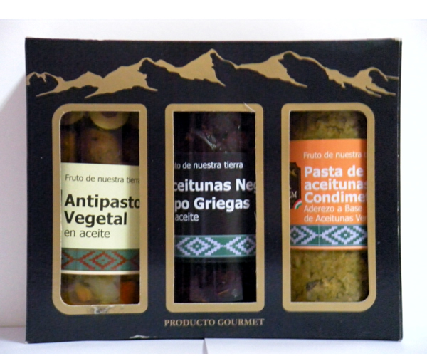Pack Trio Antipasto, Aceitunas Griegas, Pasta Aceituna Finca Cave Canem x 630 gr